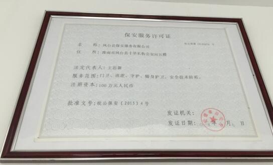 齊備的國家資質(zhì)認證保安服務(wù)許可證